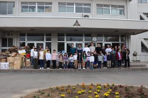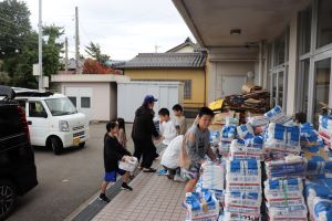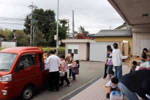中島地区は、保護者と子どもたちが一緒に地区を回り回収してきます。
