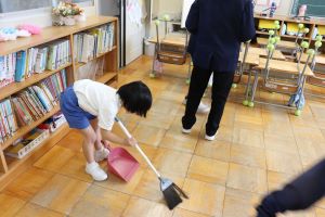 今日から、1年生が掃除に参加しました。