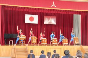 最初は、4年生の手取亢龍太鼓の演奏です。6人で力強い演奏を披露してくれました。
