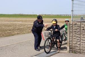 自転車は、車の仲間であるので歩行者に注意して乗ることを最後にしっかりと教えてもらいました。