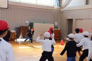27日、昼休みとわかあゆタイムを使い、6年生と遊ぼう!全校ドッチボール大会が行われました。