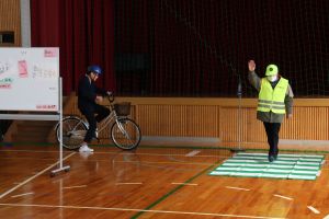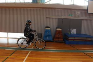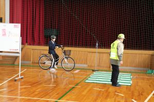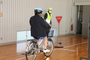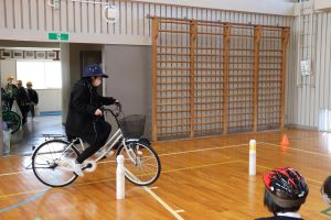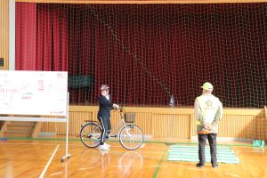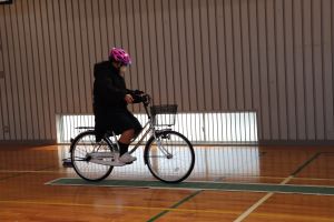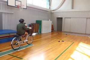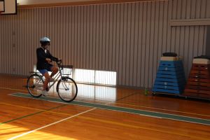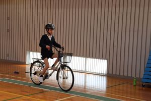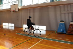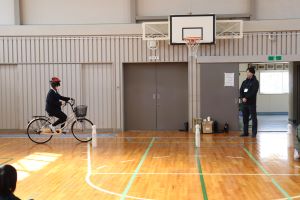 今回は、体育館の中での体験でしたが、中学校へ入学するまでに実際の道路を走り、安全に通学できるよう確認しておいてくださいね。