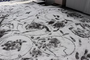 登校後、玄関前を見ると、たくさんの円がありました。