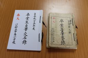 一人一人心を込めて書いた今年の6年生の名前も明治45年から続いている自筆交名録に綴りました。