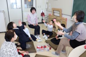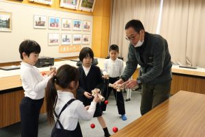 こま、お手玉、けん玉、おはじき、あやとりとグループに分かれて教えてくださいました。