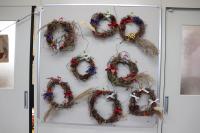 1年生は、育てたあさがおのつるを利用して、リースを作りました。