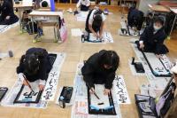 3年生以上は、書き初めの練習に入り、どこに気をつけて書いたらよいか、島﨑先生より教えていただきました。