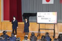 最初にスマイル委員会より、いじめ標語の発表とスマイル委員会の取組の説明がありました。