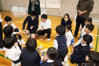 聴覚に障害がある方と初めて接する児童もいて、最初は、いつもと違い声を出さずに反応していました。