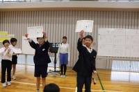 審査員は、先生方5名です。1学期は、3チーム同点でしたが、今回決着をつけたかったようです。