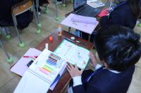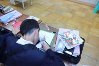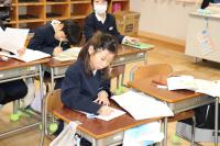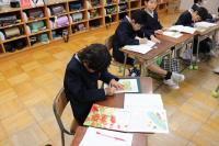 昨日、今日と静かにお話を考えたり、読み直したり、また、担任の先生にアドバイスをもらいながら取り組んでいました。