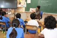 今日は、町の人権擁護委員の方々が1,2年生に人権についてのお話と読み聞かせをしてくださいました。