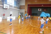 今日は、旗をふって音を出す練習をグループに分かれて行っていました。