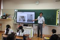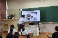 町学校アドバイザーの竹本先生が、4年生の社会科で、「昭和9年の大洪水」についての授業を行ってくださいました。