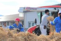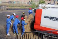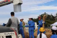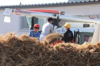 コンバインの力をかりて、脱穀開始です。