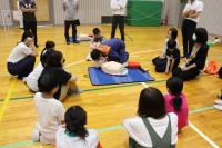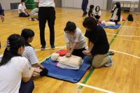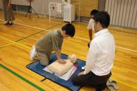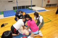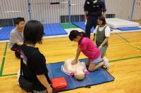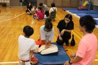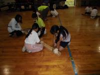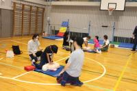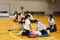 2日の夜に体育館で育友会主催の救命講習を行いました。