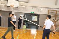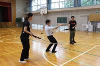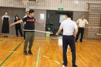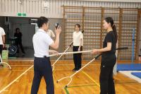 まず、さすまたの持ち方、構え方を確認しました。