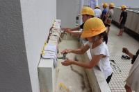 5.6年生は、救助の練習です。溺れている人にペットボトルを投げます。