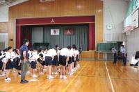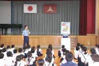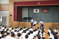 不審者対応が終わった後、体育館で警察の方のお話を聞きました。