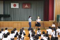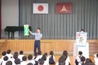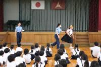 その後、6年生の代表にロールプレイングに参加してもらい、校外における不審者の対応を学びました。