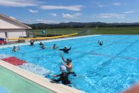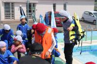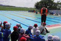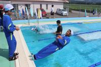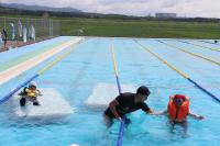 午前中、水温・気温が低かったので、中止にしていた着衣泳ですが、天気の回復が早く午後から実施することにしました。
