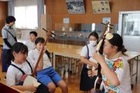 三味線は、左手で弦を押さえて演奏する練習をしていました。
