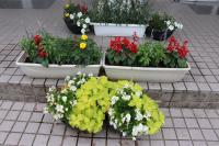 また、天気がよい日は、花壇やプランターの水やりも行っています。