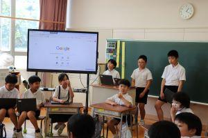 緑チームは、Chromebookを使い、絵しりとりをしていました。