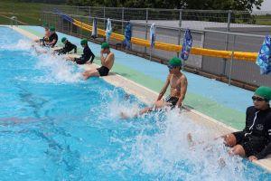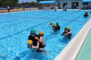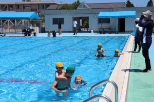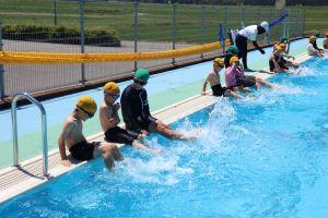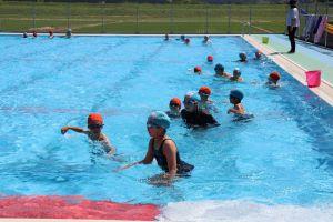1年生は、初めて小学校の大きなプールに入るということで、6年生と一緒に入りました。