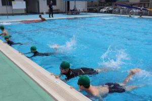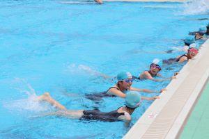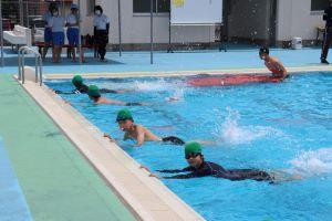 3.4年生は、バディを組み、基本から復習し、泳力に合わせて練習していました。