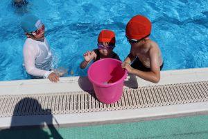 2年生は、5年生と一緒に入り、石拾いや流れるプールを楽しみました。