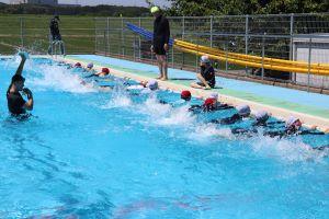 朝、プールサイドで安全祈願を行いました。