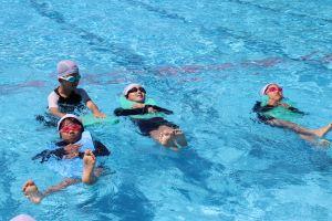 おんぶやだっこをしてもらって、小学校初プールを楽しんでいました。
