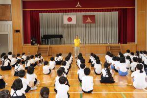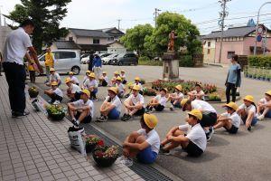 町の人権擁護委員の穴田さんより、「お花にどれだ水をあげたらいいか、しっかりお花に聞いてあげてください。そして、相手を思いやる気持ちを育ててください。」のお話の後、人権の花をいただきました。