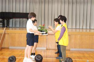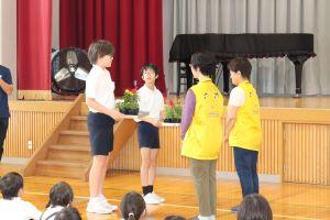 6年生の代表は、「大切に、大事に育てます。」とお花を受け取りました。