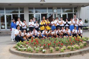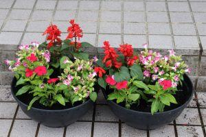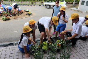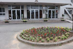 お花をたくさん植えたので、学校の前がとても明るいです。