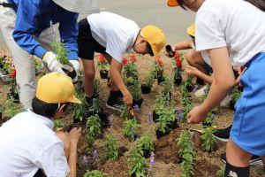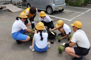 その後、5.6年生が、チームに分かれプランターに植えてくれました。