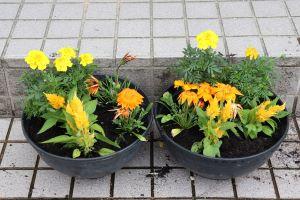 せっかくなので、チームごとにプランターに植えた花の種類を変えました。