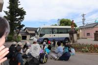 体育館で出発式をした後、まだかまだかとバスを待っていました。