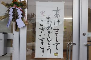 冬休みの間に練習し、上達した書初めを廊下に掲示しました。