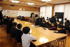 冬休み中の振り返りと3学期に向けての確認を6年生中心に行いました。