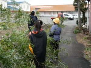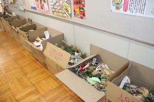各地区ごとに集めたお飾りを、ランチルームで不燃物を取り除く作業をしました。