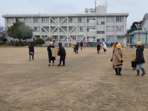 どの地区も遅れずに集団登校を行っているようですが、冬場の登校には十分気を付けてください。