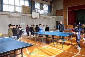 卓球クラブ、対戦相手を変えながら試合をしていました。とっても上手になっていました。