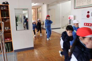 今回は、休み時間に火災が発生した場合の避難訓練を行いました。