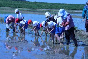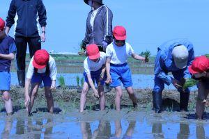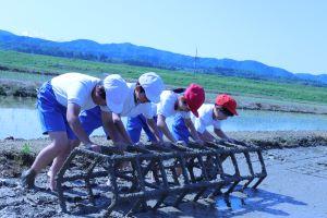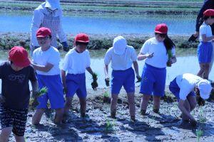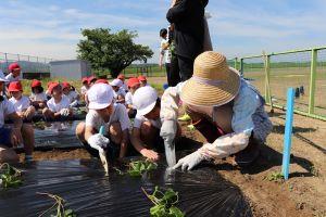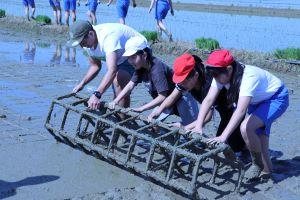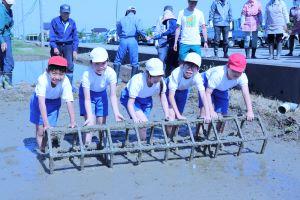 4年担任の蒲田先生もはじめての田植え体験だったそうです。