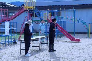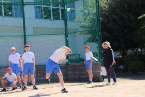 何をするか計画を立て、早速外でティボールを楽しんでいました。