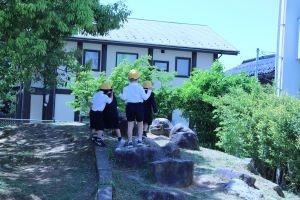 5.6年の子どもたちは、刈った草を集めすてにいきます。