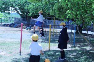 メダカ池をのぞいていたり、ブランコに乗ったり、サッカーをしたり、、、。