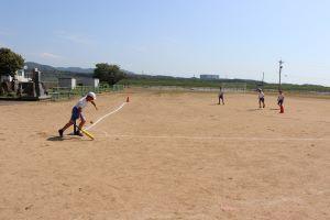 5年生が枠回しに挑戦。まっすぐ進ませるのが難しいようです。